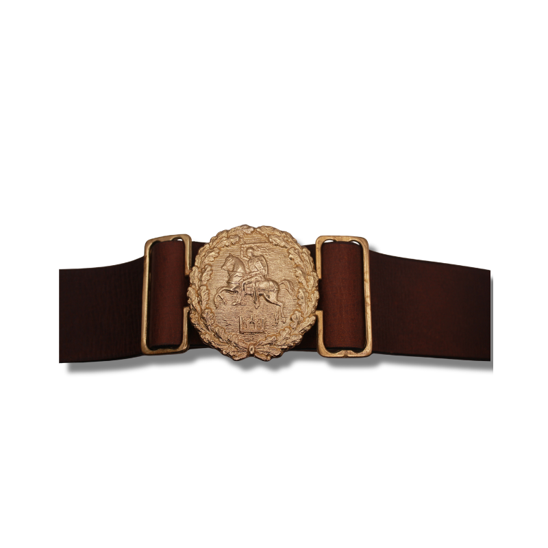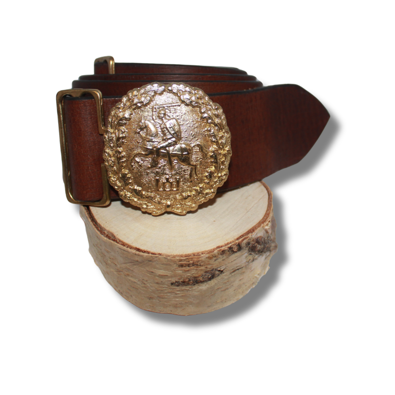 Rankų darbo odinis diržas. Kruopščiai išdirbta jaučio oda, ir autentiškai atkartota Tarpukario Lietuvos karininkų simbolika – laikotarpio, kai valstybė buvo jauna, bet stipri, o garbė, pareiga ir atsakomybė turėjo tikrą svorį. Jis skirtas nešti ne tik daiktą, bet ir atmintį – tylų pasididžiavimą savo žeme. Iškaltas Vytis – drąsos ir laisvės ženklas, Gediminaičių stulpai – valstybės tęstinumo simbolis, o ąžuolo lapų vainikas kalba apie tvirtumą, ištvermę ir ilgaamžiškumą. Rankų darbo lietuviškas odinis Tarpukario Lietuvos karininko diržas.