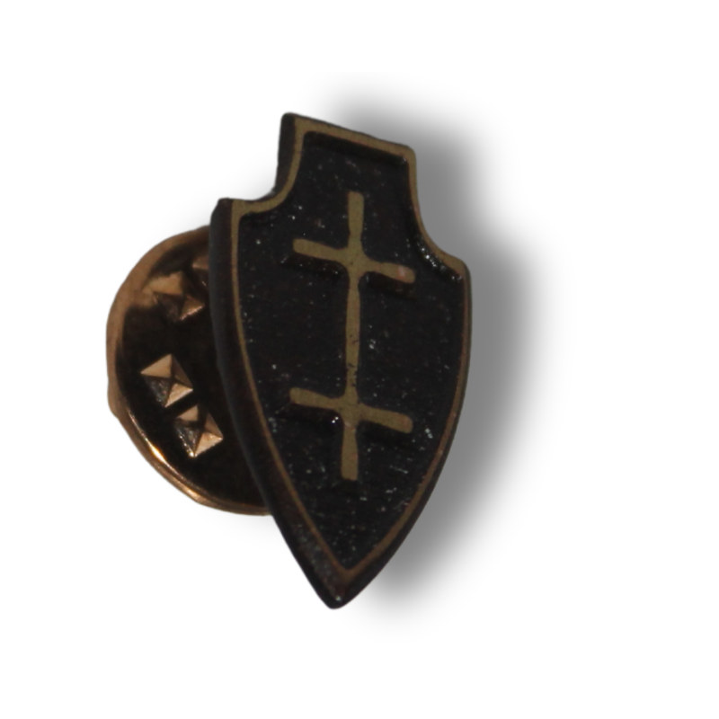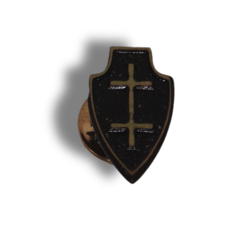 Rankų darbo žalvario ženkliukas, įamžinantis istorinį Jogailos dvigubą kryžių (Lietuvos Didžiosios Kunigaikštystės simbolį). Šis simbolis įkūnija valstybingumą, jėgą ir ryžtą. Ženkliukas yra kompaktiškas (19×11 mm) ir itin lengvas (2 g), su tvirtai prisispaudžiančiu užsegimu.