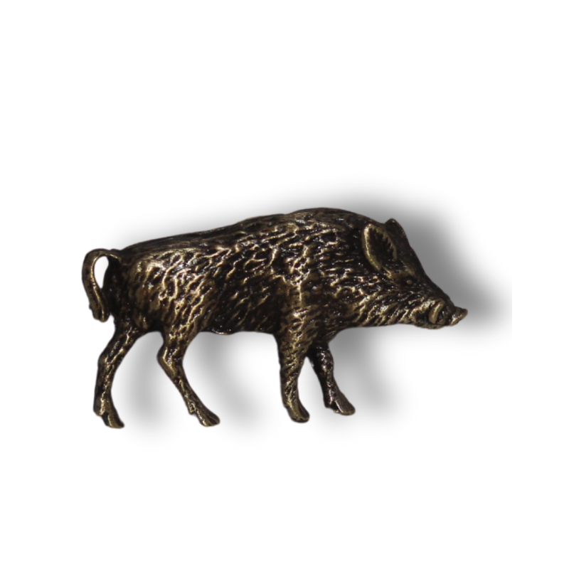 Šis žalvario ženkliukas – tai ne tik puošmena, bet ir talismano simbolis. Pailgas, detaliai išlietas Lietuvos miškų Knyslys šernas yra puikus drąsos, ištvermės ir sėkmės simbolis, ypač tinkantis medžiotojams ir nuotykių ieškotojams.