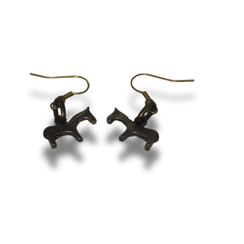 Šie grakštūs, dvipusiai auskarai su arkliukų (žirgelių) amuletais neša stiprybę, sveikatą ir optimizmą. Amuletai ir užsegimai žalvariniai. Dėl itin mažo 2 g svorio (vienas auskaras) tinka patogiam kasdieniam nešiojimui.