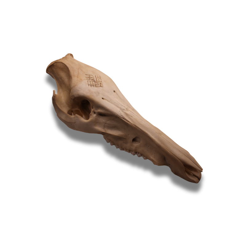 Kilmė: Kaukolė yra natūrali, rasta Lietuvos teritorijoje, todėl kiekviena jų yra unikali savo forma, dydžiu ir struktūra.