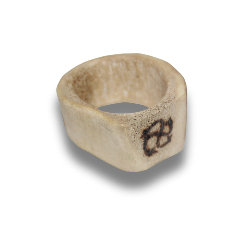 Žiedas pagamintas iš Lietuvos miškuose rasto Tauriojo elnio rago. Medžiaga – natūrali, neapdorota chemiškai, išsaugojusi savo tikrąją tekstūrą ir charakterį. Kiekvienas toks žiedas yra vienetinis, nes pats ragas diktuoja formą, spalvą ir perėjimus.