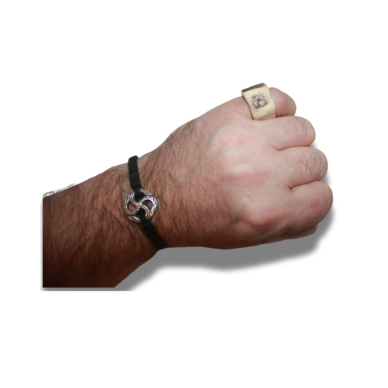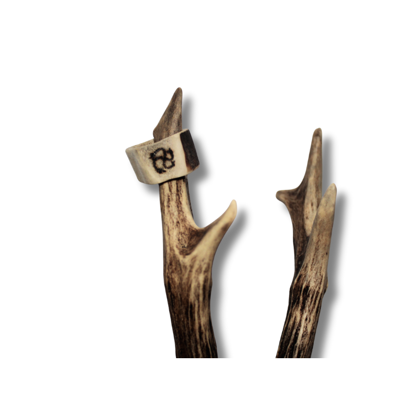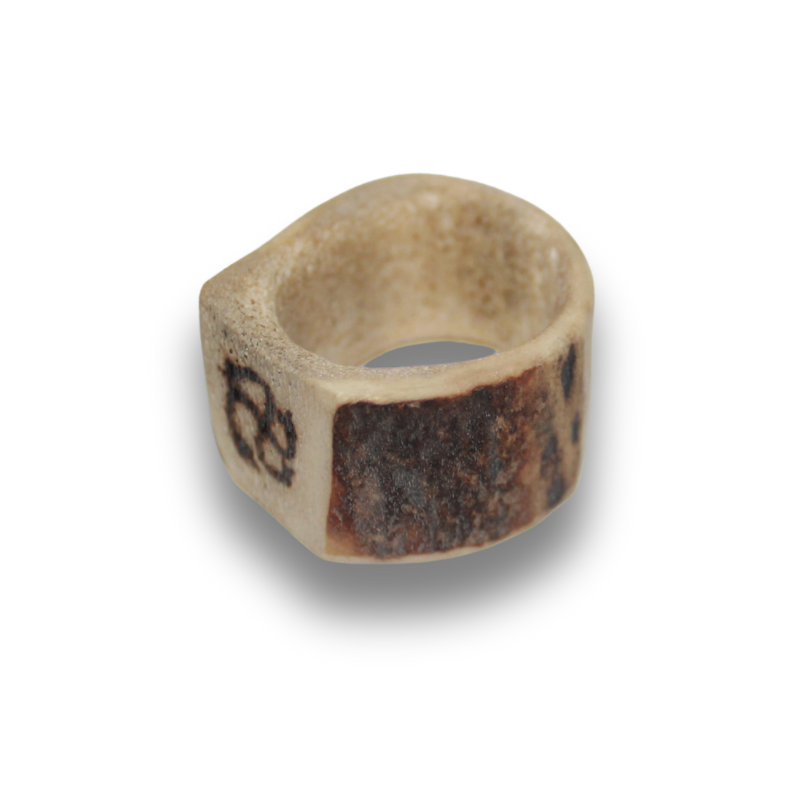 Šis žiedas–amuletas gimė iš Lietuvos miškų ir senosios baltų pasaulėjautos. Rankų darbo iš natūraliai rasto tauriojo elnio rago – gyvūno, kuris baltų kultūroje laikytas stiprybės, kilnumo ir ryšio tarp pasaulių simboliu. Žiede išdegintas Baltų Saulės ženklas – amžino judėjimo, gyvybės rato ir apsaugos simbolis. Natūralus rago paviršius su švelniu perėjimu iš balto į rudą primena metų laikų kaitą ir gamtos ciklą. Rankų darbo Tauriojo elnio rago žiedas–amuletas su Baltų Saulės ženklu.
